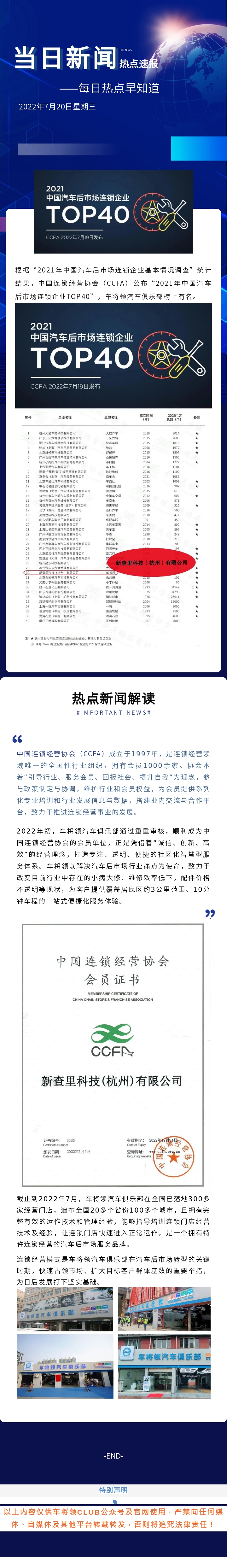 2021年中国汽车后市场连锁企业Top40发布,车将领榜上有名